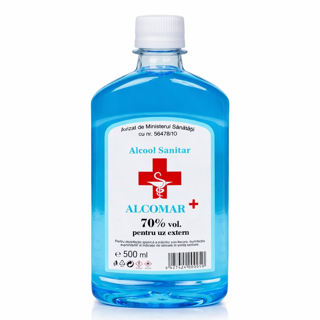 Alcoolul sanitar de 500 ml este un dezinfectant de uz extern indispensabil pentru menținerea unei igiene riguroase, având o formulă bazată pe alcool etilic în concentrație de 70%. Acest produs biocid este avizat de Ministerul Sănătății, garantând o acțiune eficientă împotriva bacteriilor și fungilor. Este soluția ideală atât pentru uz casnic, cât și pentru unități sanitare, fiind conceput pentru dezinfecția igienică a mâinilor și a suprafețelor inerte.