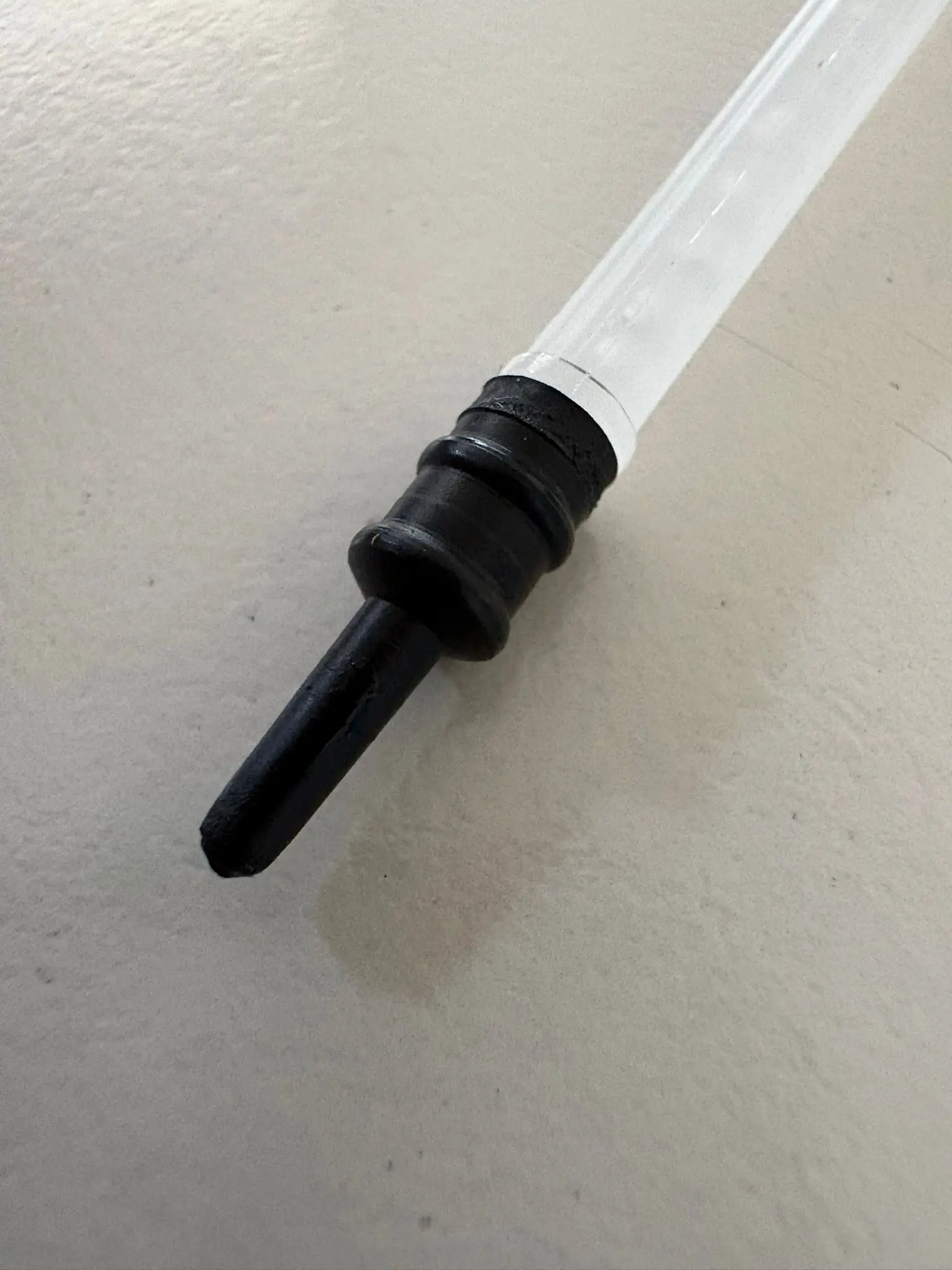 - Citirea greșită a pistonului: la seringile din 3 componente, măsura exactă se citește la linia inelului superior de etanșare (cel mai apropiat de lichid), nu la baza conică a pistonului negru.