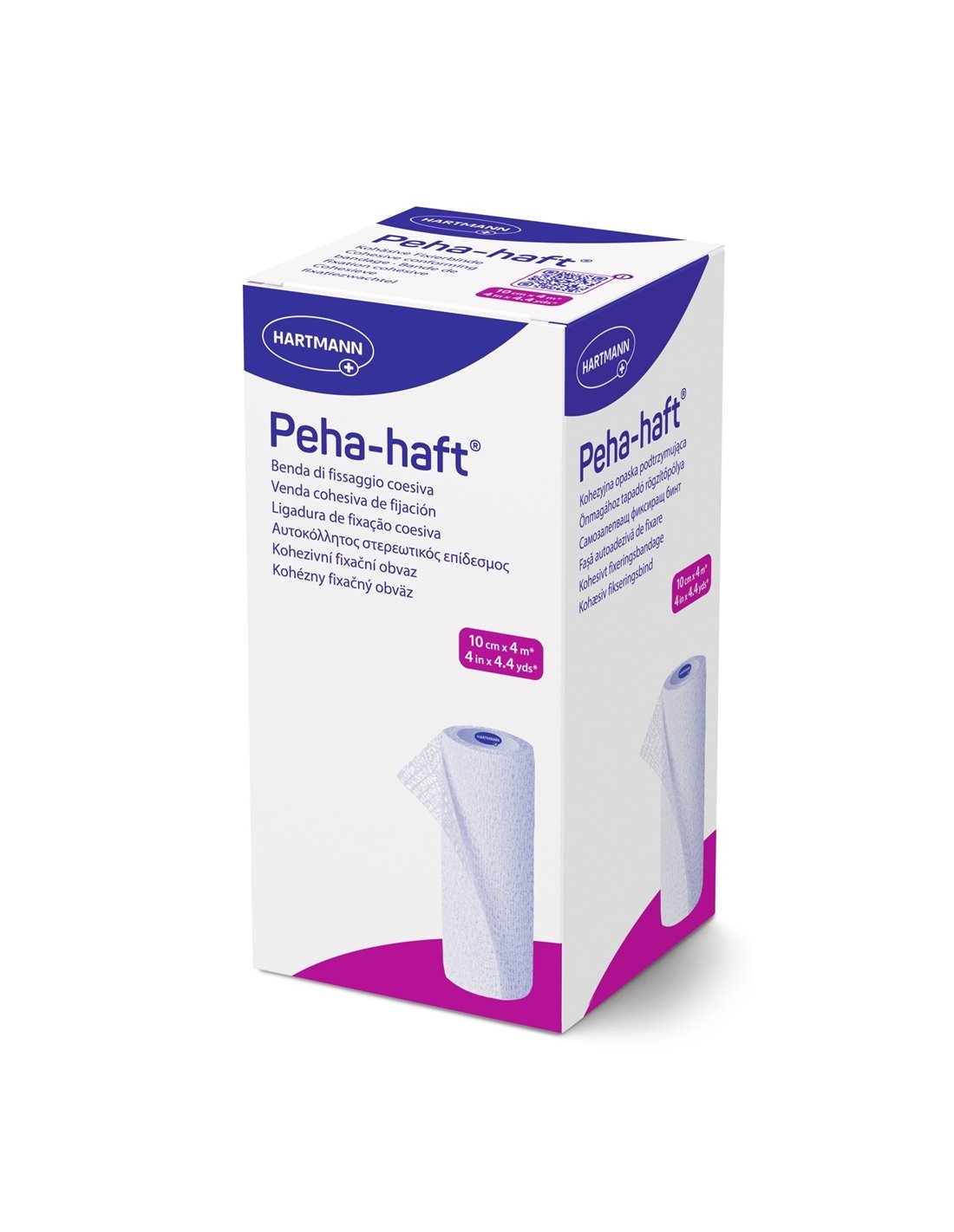 Bandajul elastic Peha-haft, cu efect dublu adeziv, are dimensiunea de 10 cm x 4 metri și o extensibilitate de aproximativ 85%. Produsul este ambalat individual (1 bucată) și este fabricat de Paul Hartmann.