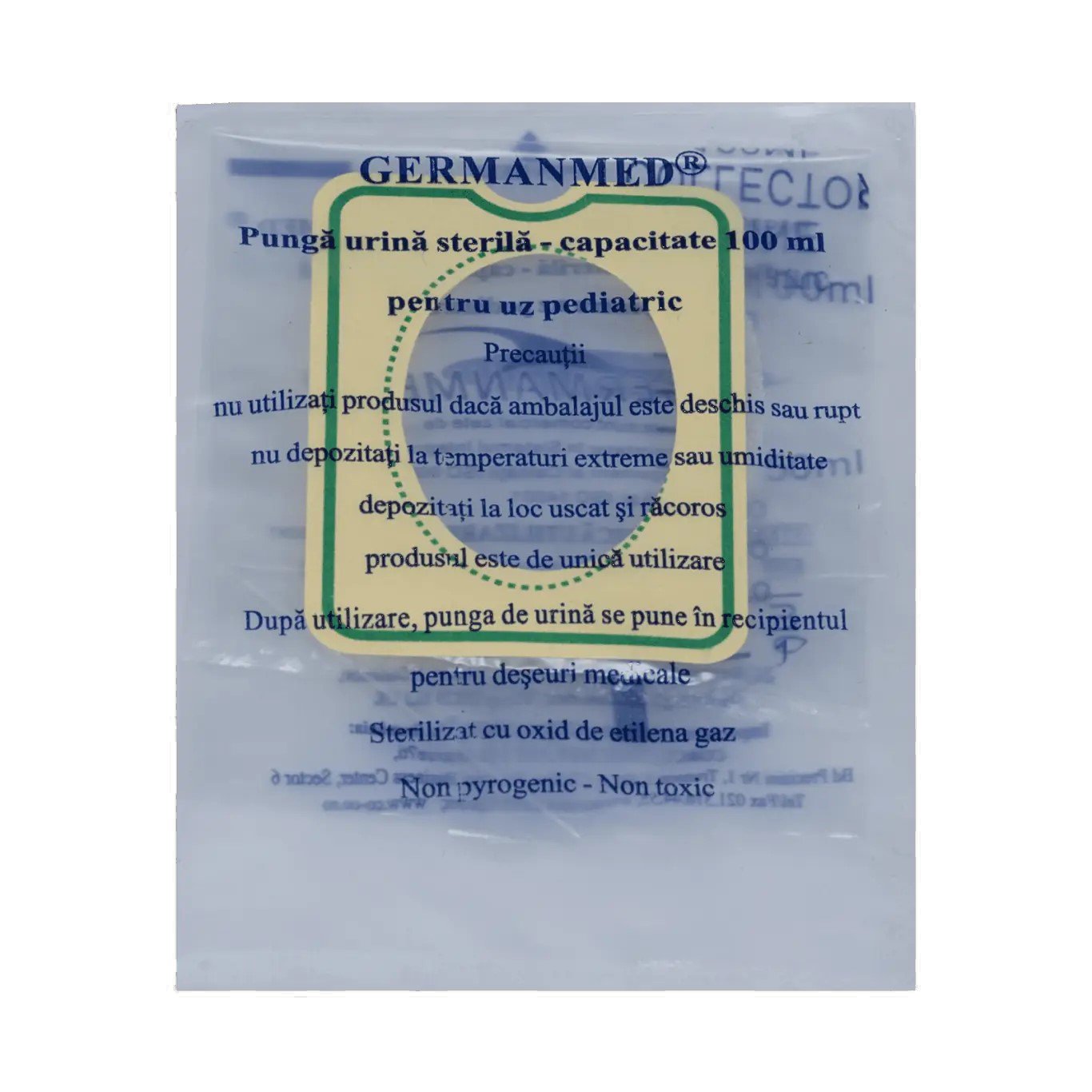 Punga pediatrică pentru recoltarea urinei este prevăzută cu adeziv pentru fixare, sterilă și ambalată individual. Ideală pentru recoltarea probei de urină la sugari și copii. Aceasta este ușor de utilizat prin aplicarea și fixarea benzii adezive.