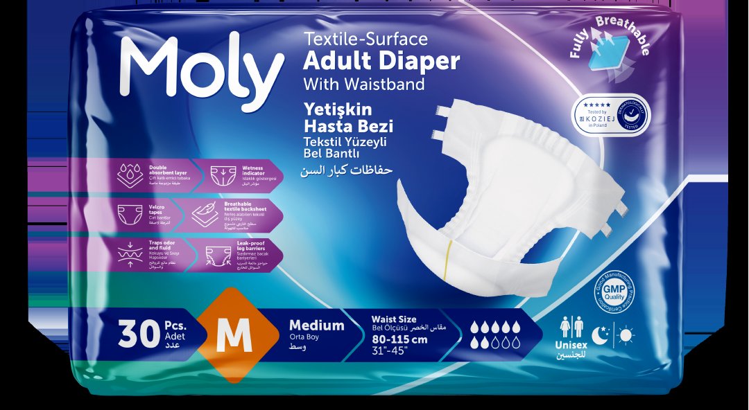 Scutecele pentru adulți Moly, mărimea M, sunt concepute pentru protecție eficientă împotriva incontinenței urinare și fecale. Oferă confort, siguranță și absorbție ridicată, fiind potrivite pentru utilizarea zilnică, atât ziua, cât și noaptea.