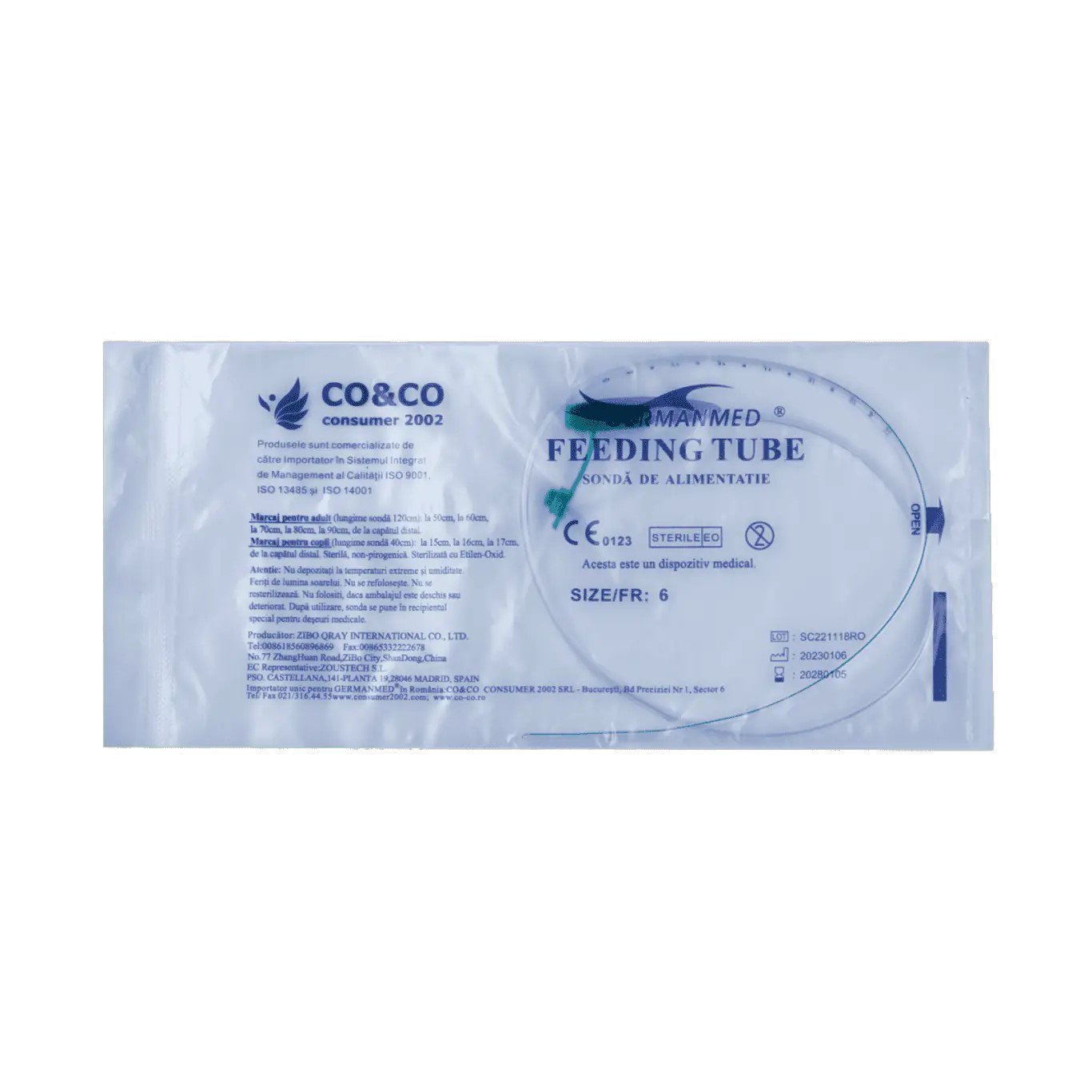 Sonda gastrica de la Germanmed este conceputa pentru alimentatia enterala si administrarea medicatiei direct in stomac sau duoden. dimensiunea ch05 (cod culoare gri) este specifica pentru utilizari ce necesita un diametru fin, reducand disconfortul pacientului in timpul insertiei.